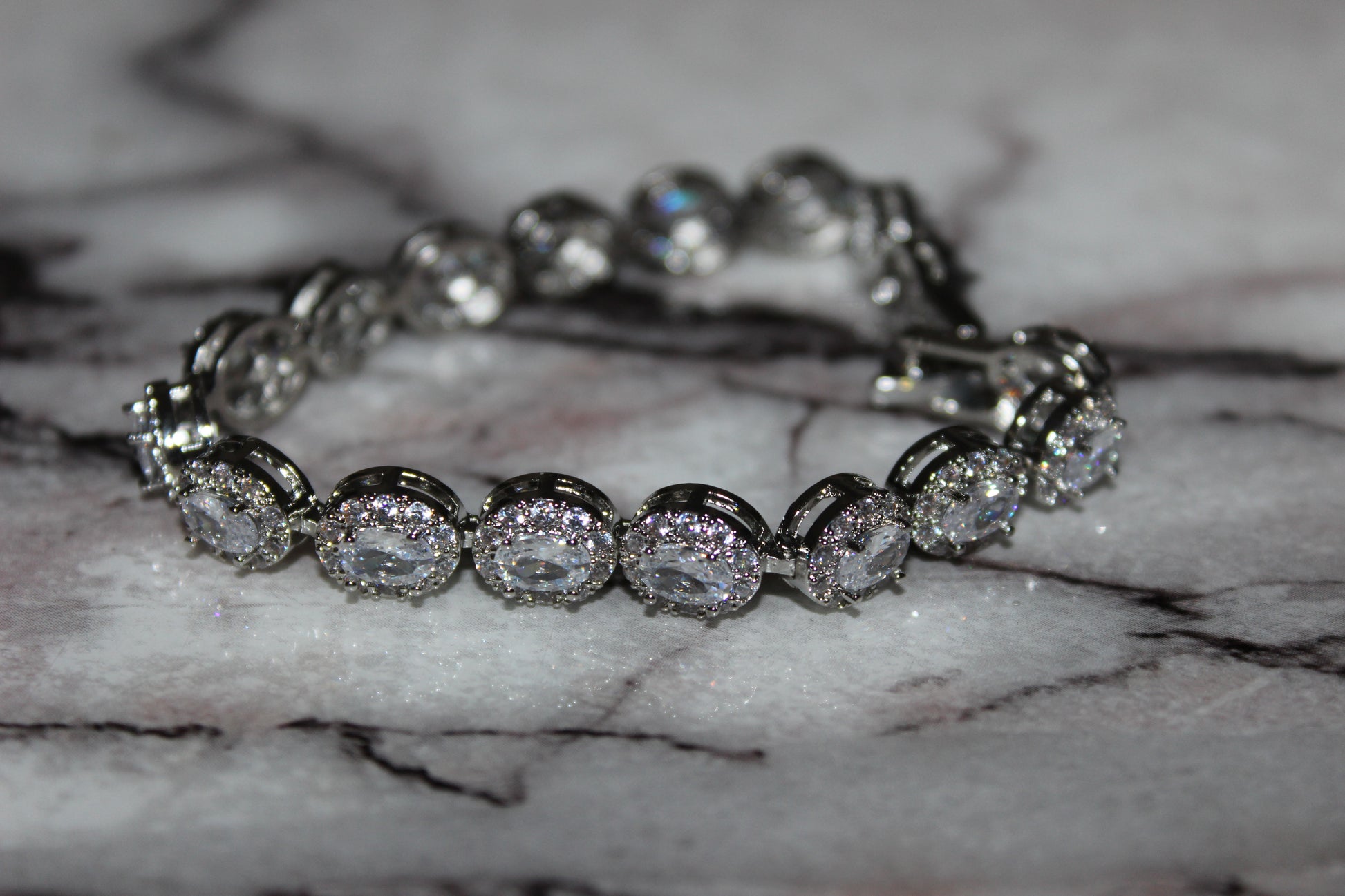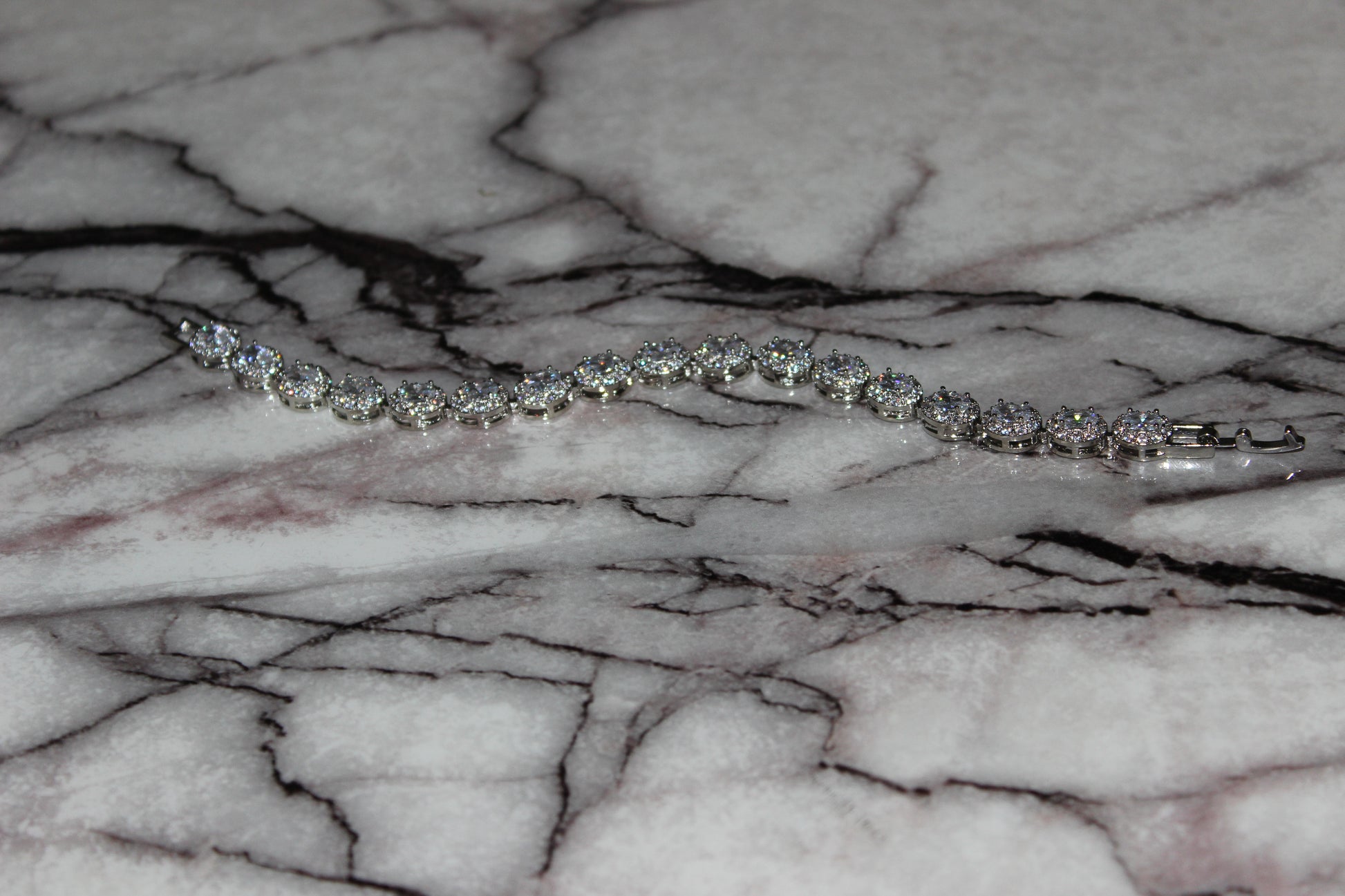 The White Glacier Link Bracelet drips in precision-cut simulated stones, each wrapped in a halo of micro-pavé brilliance for an all-white, glacier-cool glow. A polished silver-tone setting and secure clasp keep the fit locked while you flex.